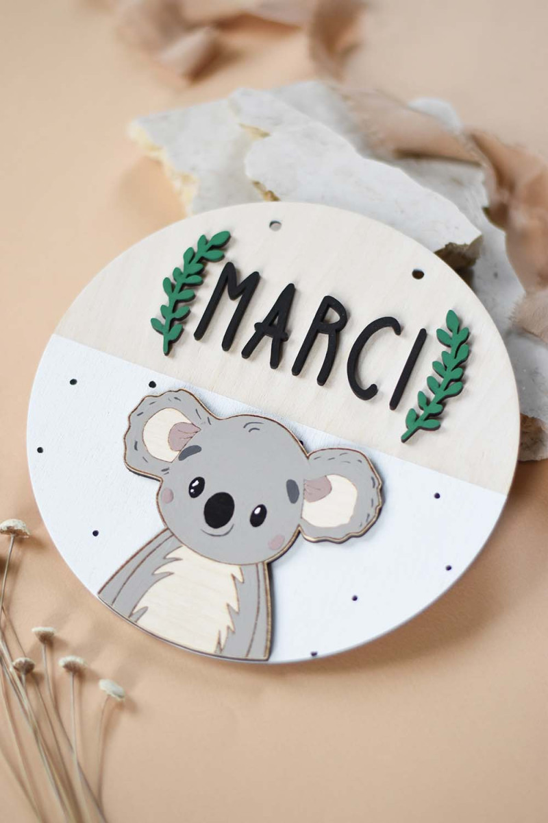 Fából készült névtábla gyerekeknek ajtóra vagy falra.